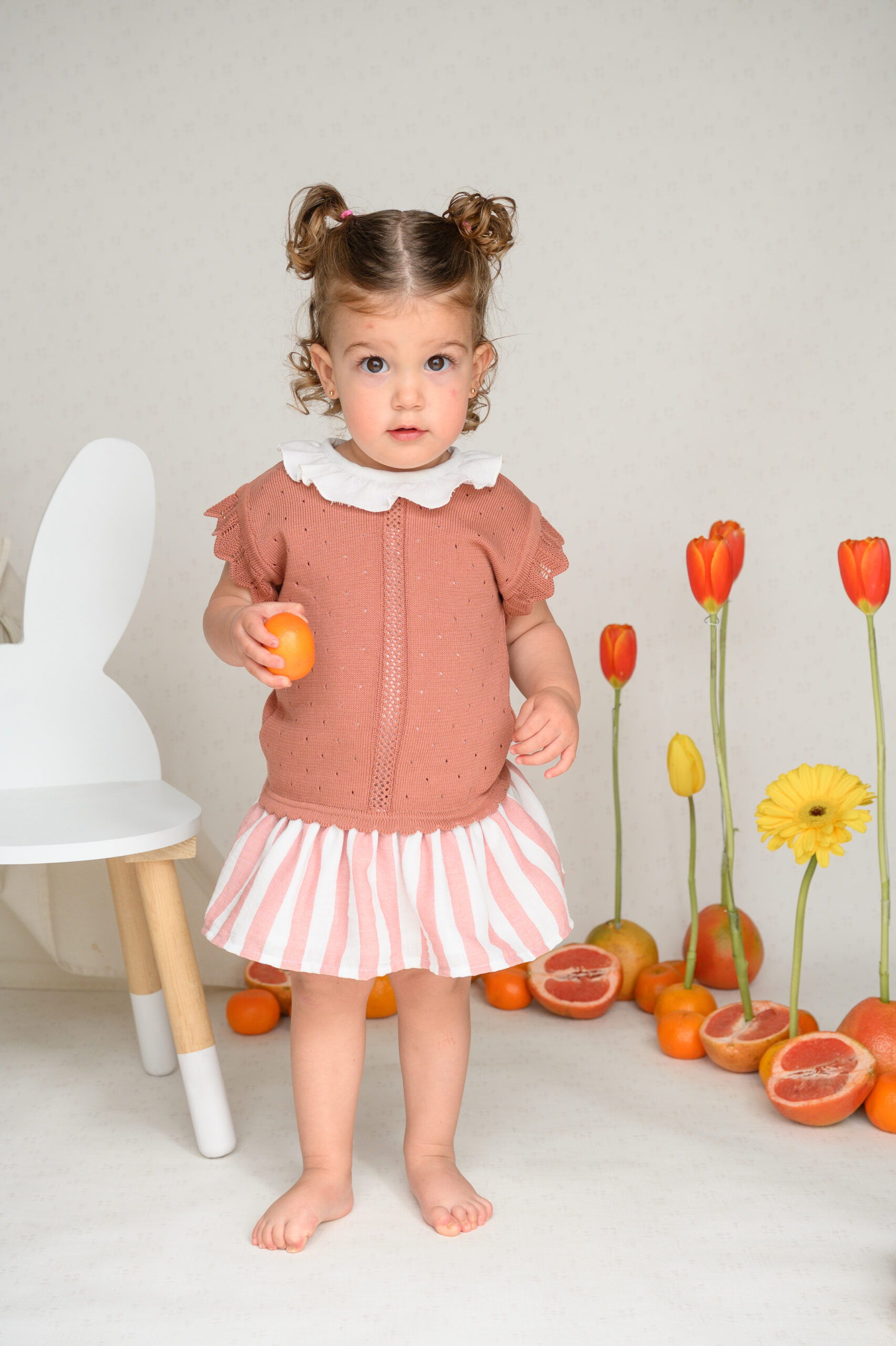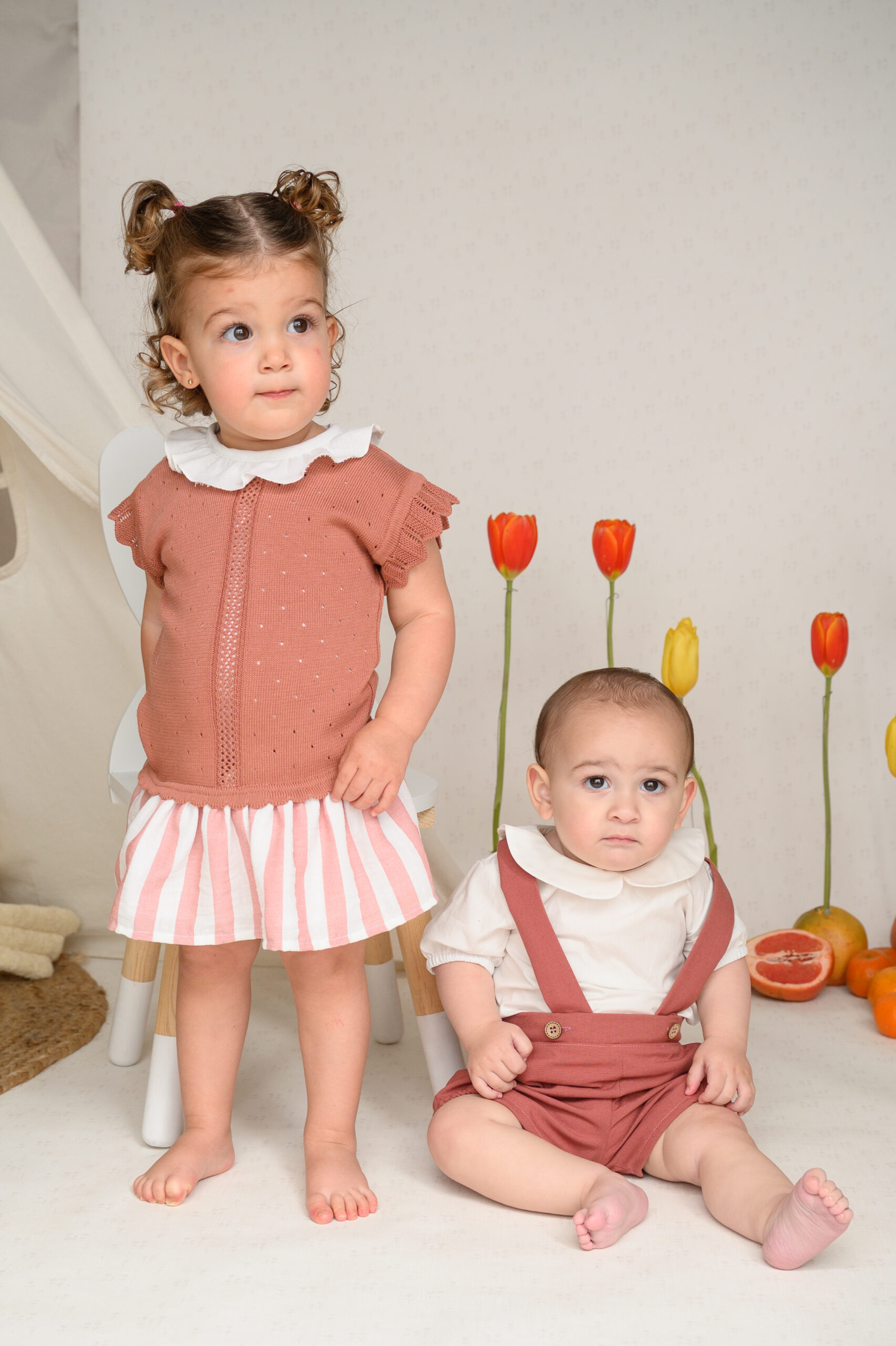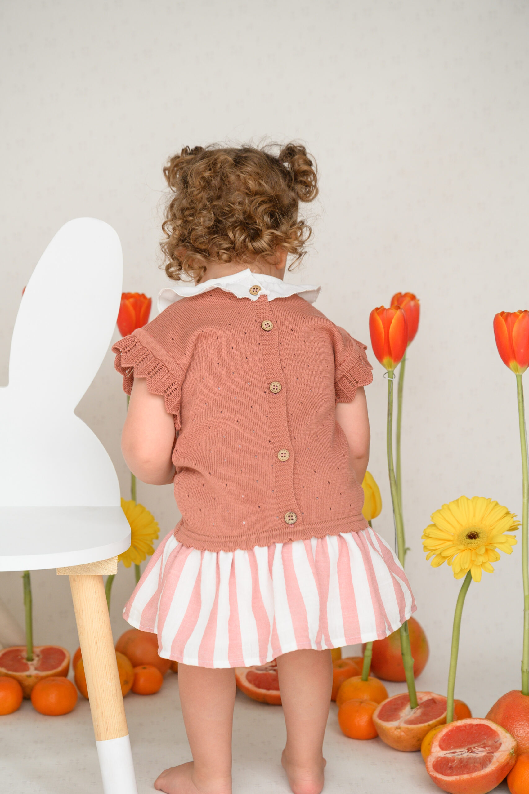 La falda y el calzón, hechos de una mezcla de algodón con lino, lo hacen fresco, ligero e ideal para cualquier ocasión especial. Además, ¡puedes hacer match con sus hermanos bebés y niños!